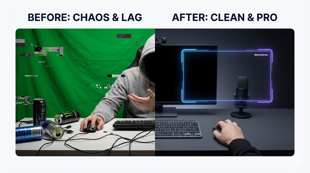 Back in the day, green screen videos were the only option. You’d add it to OBS, apply a Chroma Key filter, and hope for the best. Here’s why this kills your stream quality: